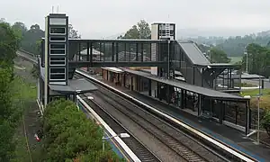 Picton railway station is a heritage-listed railway station located on the Main South line in the south-western Sydney suburb of Picton in the Wollondilly Shire local government area of New South Wales, Australia. It was built from 1863 to 1919. It is also known as the Picton Railway Station group. The property was added to the New South Wales State Heritage Register on 2 April 1999.[3] The station opened on 1 July 1869.[4][5] The station is unusually sited, with southbound journeys actually heading north out of the station before traversing a 225 degree horseshoe curve to again head south, and likewise northbound services heading south before rounding a number of curves to resume their true direction.