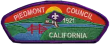 The Piedmont Council (California) of BSA serves chartered organizations and BSA units located in the city of Piedmont, located in the East Bay hills and surrounded by the city of Oakland. The council was first chartered in 1921, and by some measurements is the smallest in the BSA, but has a high level of activity and serves a high percentage of the available youth living in Piedmont. The council is home to units of Scouts BSA, Cub Scouts, Venturing Crews, Police Adventures and Sea Scouts.[1]