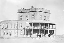 Patronage was boosted when the Adelaide and Glenelg Railway, which became the Glenelg tram line, went into service on 2 August 1873,[3] bringing in holidaymakers and customers[4] who had leisure time and spending money but did not own a horse and carriage. In 1876 the building was enlarged by another ten rooms and additional bathing facilities added.[5] The Holdfast Bay railway line gave a further boost to tourism in the area from 1880.