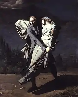 One of his most often reproduced images is Young et sa fille, exhibited at the Salon of 1804 and currently in the Musée d'Angoulême. It depicts the English poet, Edward Young carrying the body of his daughter-in-law, Elizabeth Temple, to bury her in the Swiss Protestant cemetery after it had been refused at the Catholic cemetery. Vafflard changed it to the poet's daughter, to make it more dramatic. It has been used as a cover illustration for The Lady of the Shroud by Bram Stoker[1] and Frankenstein.[2]