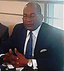 Having lost his seat in the National Assembly, Mabiala instead stood as a candidate of the Rally of the Presidential Majority (RMP), the coalition of parties supporting Sassou Nguesso, in the indirect August 2008 Senate election. He received 78 votes in Niari Region, placing second and therefore winning the second of Niari's six available seats.[11] As part of the customary bureau d'âge, he and Jean-Nicolas Mongala assisted the oldest Senator, Jean-Pierre Nonault, in overseeing the election of the Senate's bureau when the Senate began meeting for its new term on 12 August 2008. The bureau from the previous Senate term was re-elected with only a few changes.[12] In late August 2008, a new Senate commission, the Health, Social Affairs, Family, Gender, and Environment Commission, was created, and Mabiala was elected as its President.[13][14] Mabiala was included on a Senate commission established in April 2009 to discuss with the government the issue of granting compensation to departmental councillors; although the need to compensate the councillors was agreed upon, no action had been taken to remedy the situation.[15]