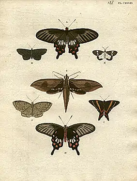 - ↑ Chainey, J.E. (2005) The species of Papilionidae and Pieridae (Lepidoptera) described by Cramer and Stoll and their putative type material in the Natural History Museum in London. In: Zoological Journal of the Linnean Society, 145, p. 283–337.
