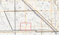 According to The Electronic Encyclopedia of Chicago, the neighborhood is the more affluent portion of the Stony Island Heights neighborhood that occupies the eastern two-thirds of Calumet Heights.[1] Several sources more loosely define Pill Hill as the entire Calumet Heights region and use the names interchangeably to refer to the whole area.[2][3] Other sources including one co-published by MSNBC, clearly depict it as a rectangular neighborhood running for eight blocks bounded by East 91st or East 92nd Street and East 94th or East 95th Street to the north and south, respectively, and South Paxton Avenue and South Cregier Avenue to the east and west, respectively.[4][5] The neighborhood is known for homes with built-in one-car garages and private yards. The region has little commercial development.[5]