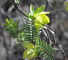 Pimelea aeruginosa is a species of small shrub in the family Thymelaeaceae. It is a small shrub with yellow flowers and is endemic to Western Australia.
