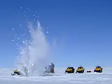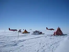 In the 2011–2012 field season, after five weeks of delays, the camp staff was finally able to establish the Main Camp just before New Year.[37] The following week, Bindschadler and his team were able to arrive. Due to additional weather delays, the helicopters were not able to arrive by the NSF 'drop dead' date and the field season was cancelled.[38] Limited science was still accomplished by the team thanks to a series of flights by KBA back onto the glacier; conditions had changed drastically since the last Twin Otter flights.[39]