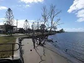 The Pine River carries the city border between the City of Moreton Bay and City of Brisbane along its middle (continuing up the South Pine River). The northern shoreline follows Pine Rivers suburbs of Murrumba Downs and Griffin, while the southern shoreline follows Brisbane suburbs of Bald Hills and Brighton. The river descends 11 metres (36 ft) over its 7-kilometre (4.3 mi) course.[1] The Bald Hills Creek feeds into the Pine River which create the Bald Hills Creek and Tinchi Tamba Wetlands Reserve, a large environmental park covering more than 380 hectares (940 acres). The Pine River and Hays Inlet wetland is significant because of its value to wildlife, especially migratory waders.[2] The Pine River is classified as being 'extensively modified'.[3]