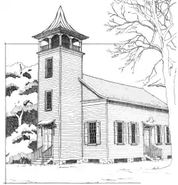 Pineville Chapel, in the district. From a 2012 Historic American Buildings Survey drawing.