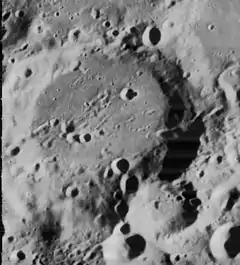 Pingré is a lunar impact crater that is located near the southwest limb of the Moon, beyond the large crater Phocylides. It lies to the northwest of the huge walled basin Bailly, and to the east of the smaller Graff. Due to its location, this crater appears foreshortened when viewed from the Earth.