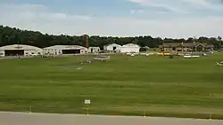 The airport is part of the EAA Aviation Museum. In the hangars are some of the oldest aircraft the museum has, including "Golden Age" (1920s/1930s) biplanes and vintage monoplanes such as Swallow and WACO biplanes, Travel Air, Curtiss Robin, Fairchild FC-2, Stinson Aircraft, Spartan C-3, Great Lakes 2T-1A acrobat, Aeronca K, Monocoupe, Howard DGA, Heath Parasol, Pietenpol Air Camper, and many others, most in special vintage-style hangars.[3]