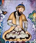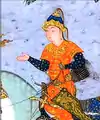![]() | The Avestan antecedent of Jamshid is Yima,[33] who was chosen by Ahura Mazda to be the first king of the earth. After sacrificing to the gods, his wish to have the power to make mortals immortal and to ameliorate the climate was granted. His subsequent hubris resulted in the loss of his throne and he was condemned to wander the earth until he was cut in half by a character named Spitiyura.[63] | |
