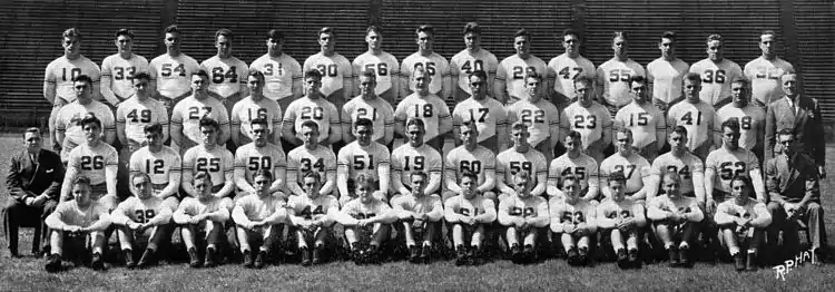 The nine national championships claimed by Pitt are presented in its annual football media guide:[4] All selections for seasons before 1934 were made retrospectively (selected years or decades later).