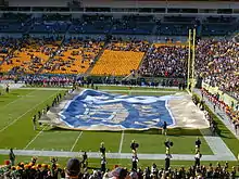 76. Schwab, Nikki (October 24, 2003). "Panther Pitt colors games blue and gold with towels". The Pitt News. Retrieved November 29, 2011.