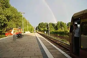 Berlin-Plänterwald is a railway station in the Treptow-Köpenick district of Berlin. It is served by the S-Bahn lines S8, S85 and S9.