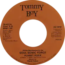 54. 1 2 Planet Rock (label). Afrika Bambaataa & the Soul Sonic Force. Tommy Boy Records. 1982. TB 823.{{cite AV media notes}}: CS1 maint: others in cite AV media (notes) (link)
