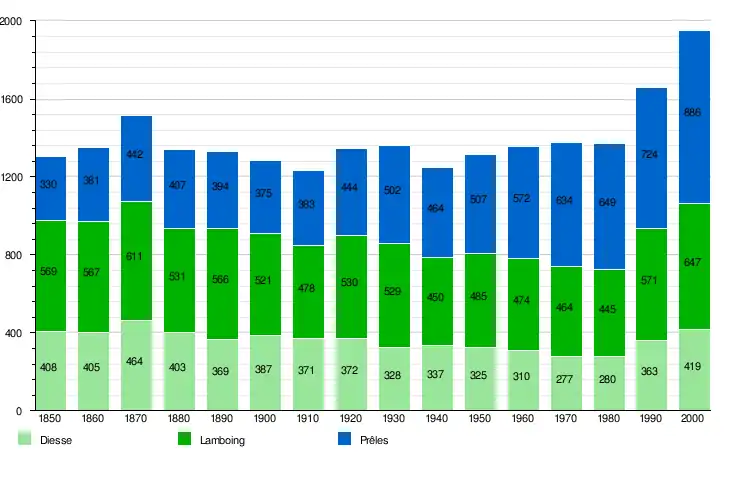 The total population of Plateau de Diesse (as of December 2020) is 2,056.[8]