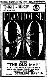 Playhouse 90 was an American television anthology drama series that aired on CBS from 1956 to 1960 for a total of 133 episodes. The show was produced at CBS Television City in Los Angeles, California. Since live anthology drama series of the mid-1950s usually were hour-long shows, the title highlighted the network's intention to present something unusual: a weekly series of hour-and-a-half-long dramas rather than 60-minute plays.