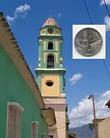 At the opposite end of Calle Hernández Echerri to the Palacio Brunet stands the Church and Monastery of Saint Francis (Iglesia y Convento de San Francisco) which houses the Museum of the Fight against Bandits (Museo de la Lucha contra Bandidos). The bandits in question were the counter-revolution forces that took refuge in the nearby Escambray Mountains (Sierra del Escambray) after the Cuban revolution and fought against Fidel Castro's government in the Escambray Revolt. Built in 1813 by Franciscan friars, the building became a parish church in 1848, and in 1895 was converted into a garrison for Spanish troops. The church fell into disrepair, and in 1920 much of it was demolished, leaving only the bell tower and a few nearby buildings. The 25 centavo (25-cent) convertible peso coin shows the bell tower of the church viewed from the corner of the Plaza Mayor on the obverse.