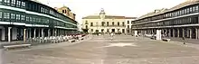 Plaza Mayor de Almagro is a town square located in the city of Almagro, Castile-La Mancha, Spain. Amalgro is designated a conjunto histórico (a heritage listing), and the square is of architectural interest. It is the location of the city hall and a historic theatre, the Corral de comedias de Almagro. Amalgro is a name of Arabic origin (المغرة , al-magra) referring to the local red clay, which is one of the materials used in the plaza mayor. Probably the settlement began as a small Muslim castle, possibly on the site now occupied by the hermitage of San Juan. The fief was bestowed on Gonzalo Yáñez de Noboa, ninth Grand Master of the Order of Calatrava, after the Battle of the Navas de Tolosa, and the grant was confirmed by Ferdinand III in 1222.[1] Amalgro became an important centre for the Order of Calatrava and the area which became known as Campo de Calatrava.[2]