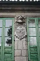 On the west side of the square, the first house, at number 5, is that of the archdeacon of the Salnés, Juan Fernández de Sotomayor, and was later the home of the Marist Brothers. It preserves two large pointed arches on the sides of the arcades on the ground floor and a small Gothic pointed window with a small rose window[21] on the south façade of the first floor, restored in 1975.[22] On the façade facing the square, the house has a coat of arms between the balcony doors. After its renovation, the building will be used as tourist accommodation.[23]