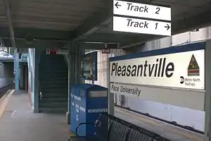 Pleasantville station is a commuter rail stop on the Metro-North Railroad's Harlem Line, located in Pleasantville, New York. There is also bus service to the station from Pace University.