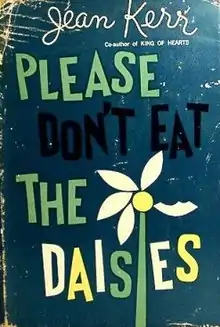 Please Don't Eat the Daisies (New York: Doubleday, 1957) is a best-selling collection of humorous essays by American humorist and playwright Jean Kerr about suburban living and raising four boys. The essays do not have a plot or through-storyline, but the book sold so well it was adapted into a 1960 film starring Doris Day and David Niven. The film was later adapted into a 1965-1967 television series starring Patricia Crowley and Mark Miller. Kerr followed up this book with two later best-selling collections, The Snake Has All the Lines and Penny Candy.