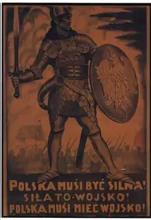The Polish Armed Forces (Polish: Polska Siła Zbrojna, German: Polnische Wehrmacht) was a military formation created during World War I.[1] It was created from the more Polish dominated, Polish Auxiliary Crops (also called Polish Legions), headed by Pilsudski.[2] It was the armed forces of a puppet Kingdom of Poland envisioned by the Prussian Mitteleuropa Plan. The results of the recruiting campaign were dismal.[3] The Polish Armed Forces was nevertheless established, as part of the German Army and under complete German command. The commander-in-chief of the Polish Armed Forces became general-governor Hans Hartwig von Beseler, while the de facto commander was General der Infanterie Felix von Barth, head of the training branch.[4]