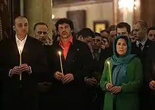 The government removed provisions in the Criminal Code which criminalized libel, supposedly to protect freedom of speech of the media. However, the media pluralism remained low. The opposition TV channels faced significant difficulties in obtaining news broadcasting license from the Georgian National Communications Commission. During the 2007 Georgian demonstrations, thousands of Georgians dissatisfied with the Saakashvili's rule protested peacefully in the streets of Tbilisi and Batumi. The government responded by raiding the protests and shutting down the opposition channels such as TV Imedi and Kavkasia. These events led to the eventual departure of Nino Burjanadze from the ruling coalition in 2008.[23] Along with the death of Zurab Zhvania in 2005,[24] this allowed Saakashvili to concentrate all state powers, assisted by a few powerful officials (including Interior Minister Vano Merabishvili,[25] Justice Minister Zurab Adeishvili,[26] and Defense Minister Davit Kezerashvili).[27]