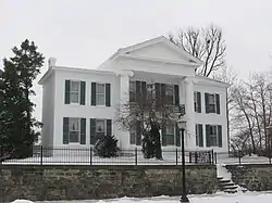 The Pollard-Nelson House is a historic home in Logansport, Cass County, Indiana. It was built in 1845 and enlarged in 1889 and 1910. It is a two-story, seven-bay, Greek Revival style brick dwelling with flanking two-story wings and rear additions. It has a gable roof and features a two-story, projecting front portico supported by Doric order columns.[2]: 2