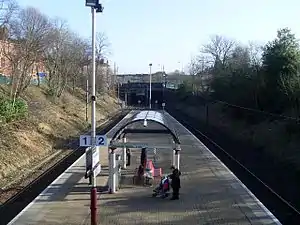 Pollokshields West railway station is one of three railway stations in Pollokshields, a district of Glasgow, Scotland. The station is managed by ScotRail and lies on the Cathcart Circle Line. The Cathcart Circle Line has been electrified since 1962 under British Railways.