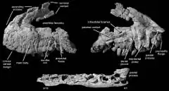 The articular and surangular are fragmentary, and one of the few features preserved is a foramen for a branch of the facial nerve.[2]