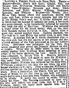The Vale also reached the final of the Shield - now called the East of Scotland Shield - for the only time, and faced Mossend Swifts again, this time at Tynecastle Park but in front of only 1,000. It looked as if the Vale had gained revenge over the Swifts with a 2–1 win, thanks to goals from Nangle and Amos. However the Swifts protested that Vale's left-back Oag and inside-right Phillips for "professional irregularities".[14] The protest was upheld and the Swifts won the replayed tie at Easter Road by another 4–1 scoreline.[15]