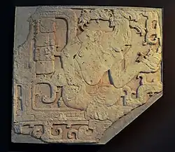 There are texts at Pomona referring to dates as early as 297 CE, but little more is known from this time period.[1] In 659 CE, Palenque captured six lords in battle. One was said to be from Pipa', a location associated with the site of Pomona. Another Pipa' lord was said to have died in 663.[2] A king of Pomona rose to the throne under the supervision of K'inich Kan Bahlam III of Palenque in 751 CE.[3] In March 792 CE, Piedras Negras attacked Pomona and took prisoners (depicted on Piedras Negras stela 12); the same happened two years later. The defeated king at Pomona was named Kuch' Bahlam.[4]