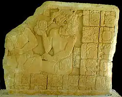 Pomona is renowned for the delicacy and beauty of its relief sculpture, which shows similarities with that of Jonuta and Palenque. Panel 1 (Fig. 3) shows two of originally four young princes wearing the aquatic attributes of the Bacabs and holding Year Bearer days in their hands.[5]
