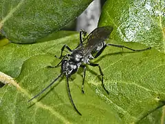 Pompilus cinereus, the leaden spider wasp is the most widespread species of the Pompilus spider wasps, and throughout a large proportion of its wide distribution is the only species of Pompilus.[1] It is the type species of the genus Pompilus and therefore of the family Pompilidae.