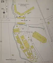Ponce de Leon was known for a magnolia tree in deep center field. Balls landing in the tree remained in play until Earl Mann took over the team in 1947 and moved the outfield wall in 50 feet.[2] Both Babe Ruth and Eddie Mathews hit home runs that became stuck in the distant tree.[3] Willie Mays hit a 460-foot home run to centerfield during an exhibition game that was part of the 1955 Mays-Newcombe All-Stars "barnstorming tour".[4]