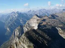 The south side consists of a pyramid-shaped and almost vertical rock face.