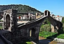 The original Roman bridge formed a part of the Via Augusta, and was the only bridge in the lower Llobregat valley until the 14th century.[4] It still features a Roman triumphal arch at its eastern abutment. It is unclear how many spans the original Roman bridge had.[2]
