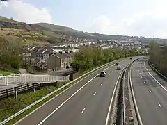 Pontsionnorton (Pont Sion Norton), Welsh for (John) Norton's Bridge, is so named because of a small bridge over the Glamorganshire Canal at this point.[1] The village/district falls within the electoral ward of Cilfynydd of the larger town and community of Pontypridd, Rhondda Cynon Taf, South Wales, and overlooks the A470 as it travells towards Abercynon. The village falls within the historic parish of Eglwysilan[2] is bounded by Cilfynydd, Coedpenmaen, Trallwn and Glyncoch, and was once location of Bodwenarth Colliery, located in Bodwenarth Woods close to the main school - Ysgol Gynradd Gymraeg Pont Sion Norton.