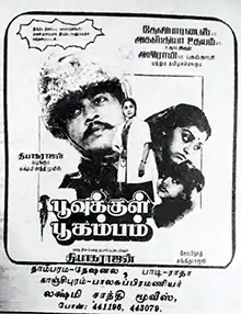 Poovukkul Boogambam (transl. An earthquake within the flower) is a 1988 Indian Tamil-language action war film written, produced and directed by Thiagarajan, making his directorial debut. The film stars himself and Parvathy alongside B. Saroja Devi and Charan Raj in supporting roles. The soundtrack was composed by S. P. Venkatesh, credited as Sangeetharajan. The film was released on 13 April 1988.
