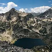 The Popovo Lake (Bulgarian: Попово езеро) is a glacial lake situated in the northern section of the Pirin mountain range, south-western Bulgaria. It is one of the eleven Popovi Lakes. The lake and its surroundings are among the most popular places for summer tourism in Pirin National Park.[1] It is situated at the bottom of the Popovski cirque and is surrounded by the peaks Sivria (2,591 m), Dzhano (2,668 m), Kralev Dvor (2,680 m), Momin Dvor (2,723 m) and Dzhengal (2,730 m).[1]