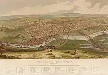 The line was opened on 12 September 1854. It ran for 4.2 kilometres (2.6 miles) from the "City Terminus" on the site of present-day Flinders Street station, crossing the Yarra River via the Sandridge Bridge, to Sandridge (now Port Melbourne). According to the Argus newspaper's report of the next day, "Long before the hour appointed ... a great crowd assembled round the station at the Melbourne terminus, lining the whole of Flinders Street". Lieutenant-Governor Charles Hotham and Lady Hotham were aboard the train, which consisted of two first-class carriages, one second-class carriage and, next to the locomotive, an open third-class carriage holding the band of the 40th Regiment.[2][1]