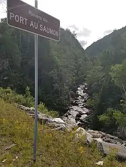 The toponym "Port-au-Saumon River" was formalized on December 5, 1968, at the Bank of place names of the Commission de toponymie du Quebec.[4]