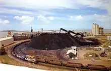 Major exports include coal, alumina, aluminium, cement products and liquid ammonia. Coal makes up 70% of the total exports from the port.[5] Each year 50 million tonnes of coal passes through the port. Major imports include bauxite and petroleum products as well as general cargo in containers.