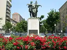 The area around the Porta Romana gate is one of the historic districts (rioni) of Milan; the rione had its own coat of arms, vermilion red. Today, the inner part of the Porta Romana district is adjacent to the city centre, and thus has a similar character as the centre itself: it is mostly a shopping district, with sumptuous 19th century- and early 20th century buildings that are either used as prestigious offices or as residences for the Milanese élite. Several institutions, including embassies and high level schools, are based in this area. Milanese celebrities that have lived here include Enzo Biagi, Enzo Bearzot, and Dario Fo.[1] The southern part of the district, farther away from the centre, is correspondingly less luxurious. Specific situations of urban decay, such as slums developing in abandoned traits of the old railway, have been reported.[2]