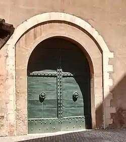 Porta San Pellegrino is a gate in the outer wall of Vatican City. It is located beside Bernini's Colonnade and the small Vatican post; it is also known as Porta Viridaria. The gate was rebuilt by Pope Alexander VI in 1492 and his arms are at the top of the gate. The gate is little used.[1]