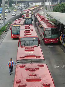 Portal del Norte is one of the terminus stations of the TransMilenio mass-transit system of Bogotá, Colombia, which opened in the year 2000.