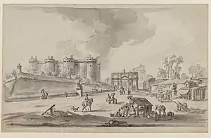 The Porte Saint-Antoine and the Bastille in a 1789 drawing by J.-B. Lallemand.