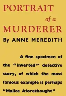 Portrait of a Murderer is a 1933 detective novel by Anne Meredith, the pen name of British writer Lucy Beatrice Malleson best known for writing as Anthony Gilbert.[1] It was a stand-alone novel by the author at the time known for her series featuring Scott Egerton and later for her Arthur Crook mystery thrillers. It was reissued in 2017 by British Library Publishing. It broadly takes the structure of an inverted detective story, as from near the beginning the identity of the murderer is revealed.[2]