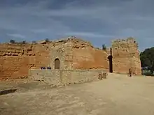 Paio Peres Correia captured Aljustrel still in 1234.[2] In 1238, Correia captured Mértola, which provided access to the left bank of the Guadiana river and was considered one of the strongest Muslim strongholds in western Iberia, while king Sancho II of Portugal captured Ayamonte for Portugal.[1] The castle of Alfajar da Pena was also captured and it allowed the Portuguese to control the flatlands between Ayamonte and Saltes, Gibraleon and Huelva, which defended Niebla.[1] From this point onwards, the Emirate of Niebla saw its land communications severed in half, but at this moment conflict sparked between Sancho and the Catholic Church, which would force the Order of Santiago to undertake the conquest of Algarve entirely on its own, without the support of the army or the fleet of the Portuguese king.[1]
