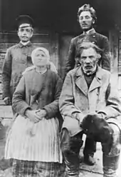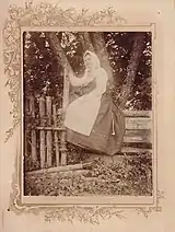 Each year, the university organized a competition of scientific papers on a given topic. In 1896, the topic was anthropological characteristics of one of the nationalities inhabiting the Russian Empire.[30] With encouragement and support from professors Eduard Petri and Eduards Volters, Višinskis set out to write a paper on the Samogitians.[42] He acquired equipment necessary to take anthropometric measurements, a box camera for taking pictures, and a permit from the Kovno Governor to tour Samogitia.[43] In late May 1896, he traveled to his native Ušnėnai to start the fieldwork. His questionnaire contained 64 questions and 45 measurements.[43] He visited 31 locations, including Varniai, Tverai, Plungė, Salantai, Mosėdis, Ylakiai,[44] taking about 170 photographs[45] and measuring 67 men and 55 women.[46] During the trip he met Sofija Pšibiliauskienė who later became a known writer under the pen name Lazdynų Pelėda.[47] At the same time, he had a falling out with Pečkauskaitė who rebuffed his advances.[48] They continued to correspond, but the letters were more distant and more focused on her literary work.[49]